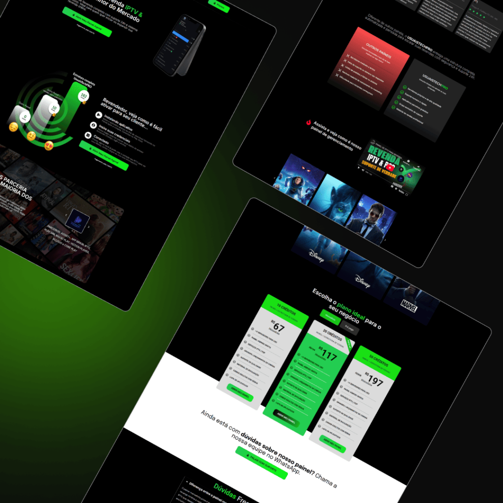 Todos os sites e landing pages são totalmente responsivos, adaptados para celular, tablet e computador.